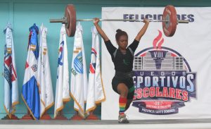 SANTO DOMINGO ESTE.- La pesista Dahiana Ortiz estableció nuevo récord para los 48 kilogramos femenino dentro de los Juegos Escolares, en envión y arranque, durante la segunda jornada de halterofilia.