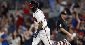 Acuña, de 20 años, envió la pelota al graderío entre el jardín izquierdo y el central en la primera entrada ante Trevor Richards. Su otro batazo de vuelta entera, con el que llegó a 19 en el año, fue ante el zurdo Adam Conley (3-3) y dio a los Bravos la ventaja por 10-6 en el séptimo inning.