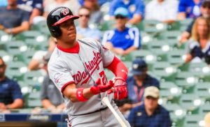 Así que el domingo Soto volvió a aparecer en la alineación de los Nacionales, por juego número 46 de manera consecutiva. Incluso tras comenzar el año en Clase A Hagerstown y su paso por Clase A Avanzada Potomac y Doble-A Harrisburg antes de que fuera llamado el 20 de mayo a las Mayores, Soto ha comenzado en más juegos (83) que todos, con excepción de cuatro, miembros de los Nacionales