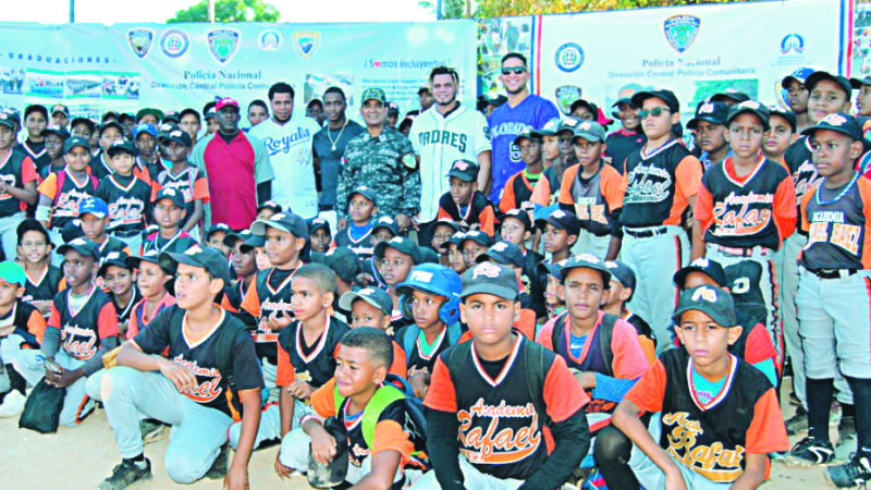 El coronel Jacobo Mateo Moquete, director central de la Policía Comunitaria, uien presidió la actividad junto a los jugadores, dijo que no hay mejor forma de mostrar ejemplos positivos a la juventud que los peloteros de Grandes Ligas, quienes logran sus metas fruto de un trabajo diario.
