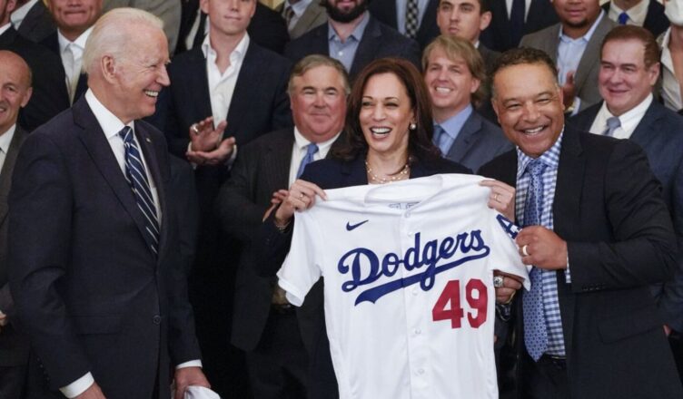 Biden se cercioró de que el encuentro transcurriera con buen humor. Comentó que no enfatizaría en el hecho de que Harris es seguidora de los Gigantes de San Francisco, rivales acérrimos de los Dodgers.